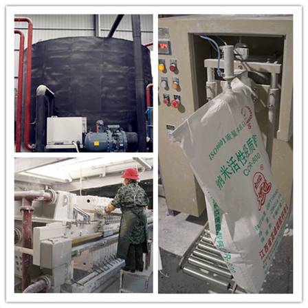 The nano-sized calcium carbonate slurry is heated to 45 ~ 95℃, and then the coating agent is added. The amount of the coating agent is 0.5 ~ 3.5% according to the weight of calcium carbonate, and the coating treatment time is 0.5 ~ 3.5 hours. The slurry is filtered and dried to obtain nano-sized active calcium carbonate.
